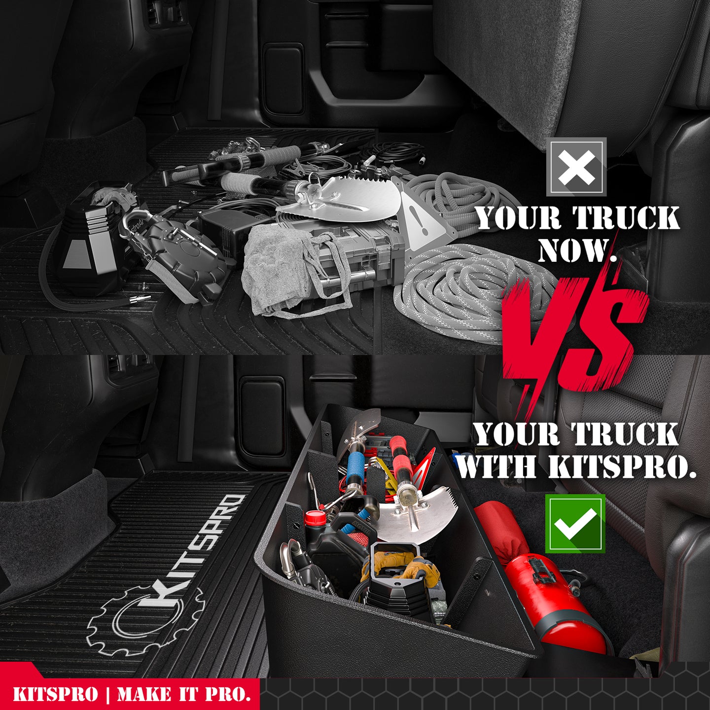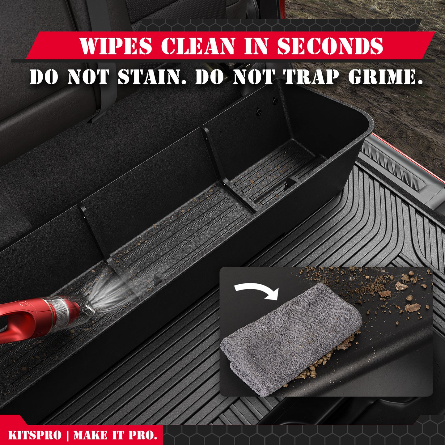Product is very easy to clean, the modular Back Seat Storage box installs in minutes, no drilling or tools required; Upgrade your Truck Under Seat Storage quickly and enjoy enhanced organization without hassle