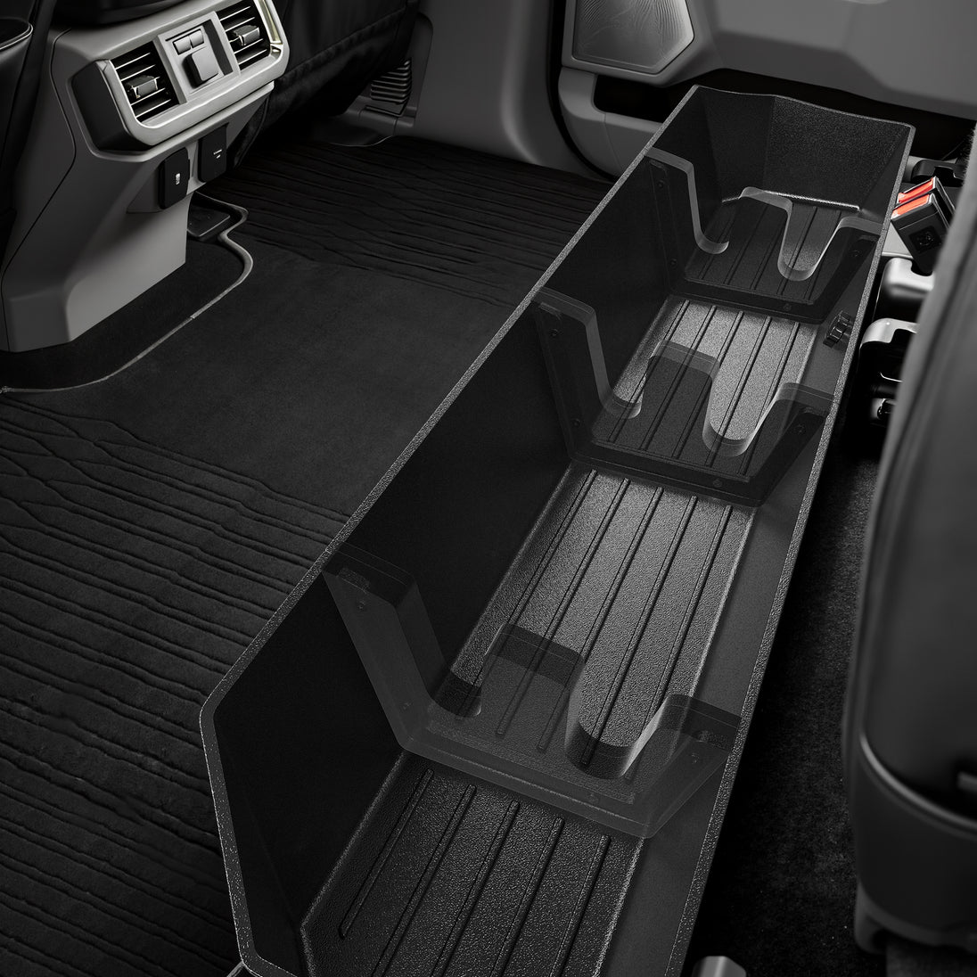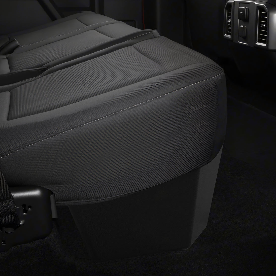 Ensure a perfect fit for your Rear Seat Storage or Truck Underseat Storage by verifying compatibility with the ConfirmedFit tool. Designed for 2017-2025 Ford F250-F550 Super Duty SuperCrew and 2015-2025 Ford F150 SuperCrew, this Underseat Truck Storage Box is engineered using 3D laser scanning for seamless integration beneath the Back Seat Storage area. It maintains full seat functionality and legroom while optimizing storage space.