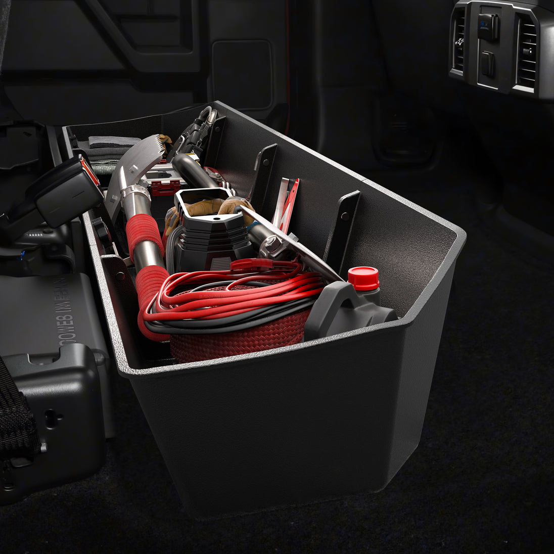 This Truck Under Seat Storage solution offers 18 gallons (68L) of heavy-duty space with removable dividers for customizable organization. Perfect for tools, camping gear, hunting equipment, or daily essentials, the Under Seat Truck Storage Box keeps items secure and neatly arranged during travel, enhancing your truck’s Rear Seat Storage efficiency.